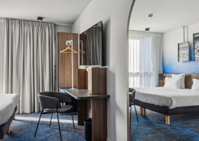 Nos chambres doubles, twin ou supérieures peuvent accueillir jusqu’à deux personnes. Elles disposent de lits jumeaux ou d’un lit double.